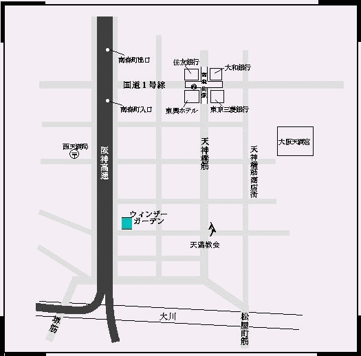 電車でお越しの際は、地下鉄谷町線・堺筋線南森町下車2番出口より天神橋筋を南へ。徒歩10分。